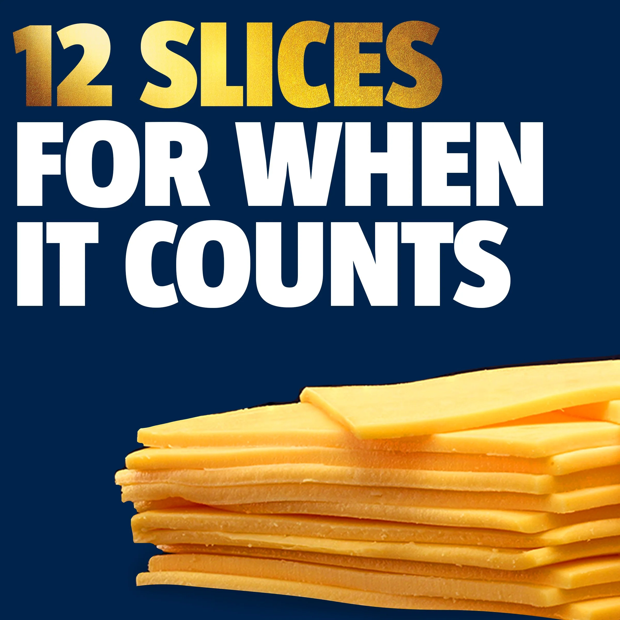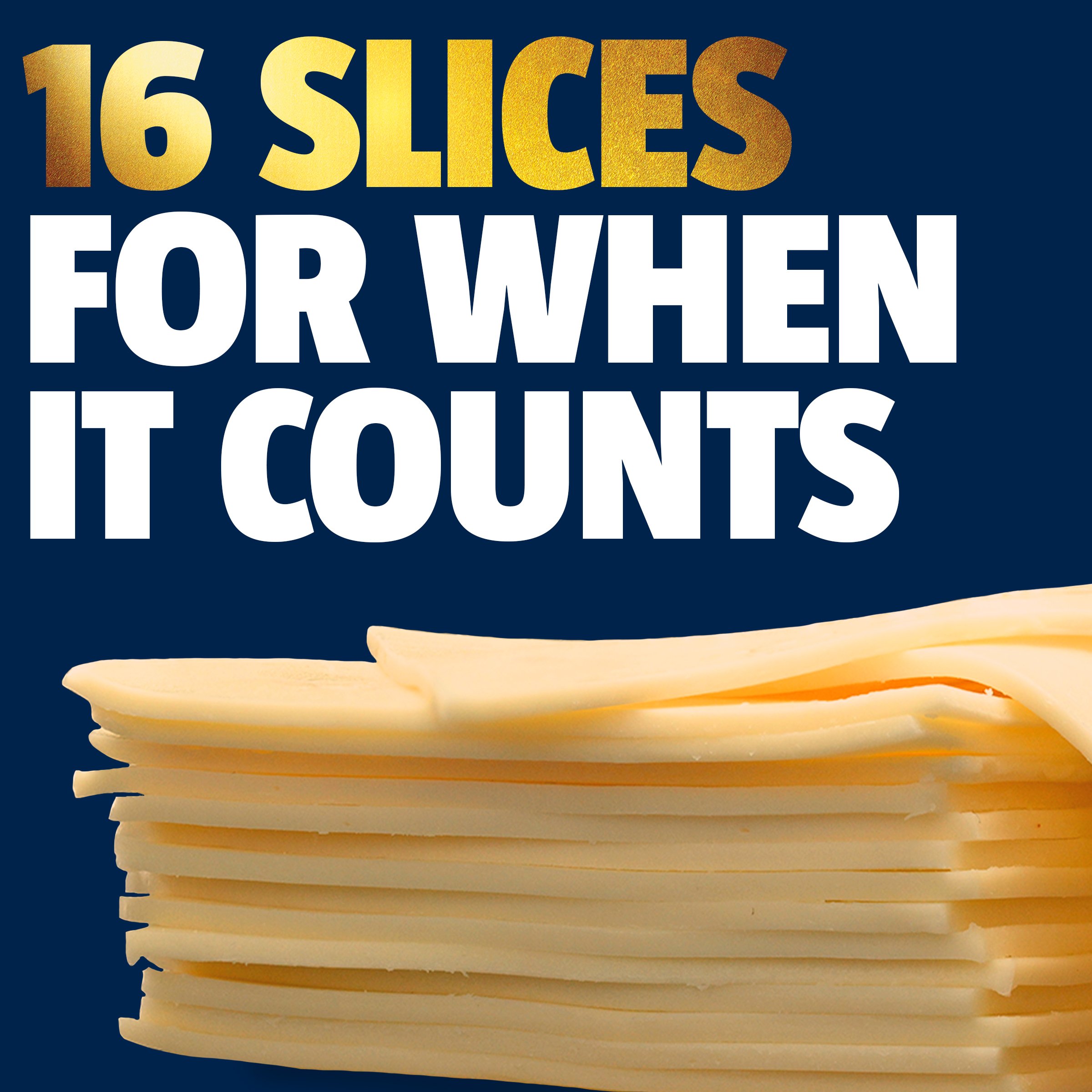 For this set of carousel images we wanted the design to be very simple with bold typography and large taste appeal. The copy highlights the bold flavor and the “perfect melt” of the cheese. The slice count and nutrition facts are displayed for each sku. The last image shows a family shot of other slice counts and flavors in this product line.