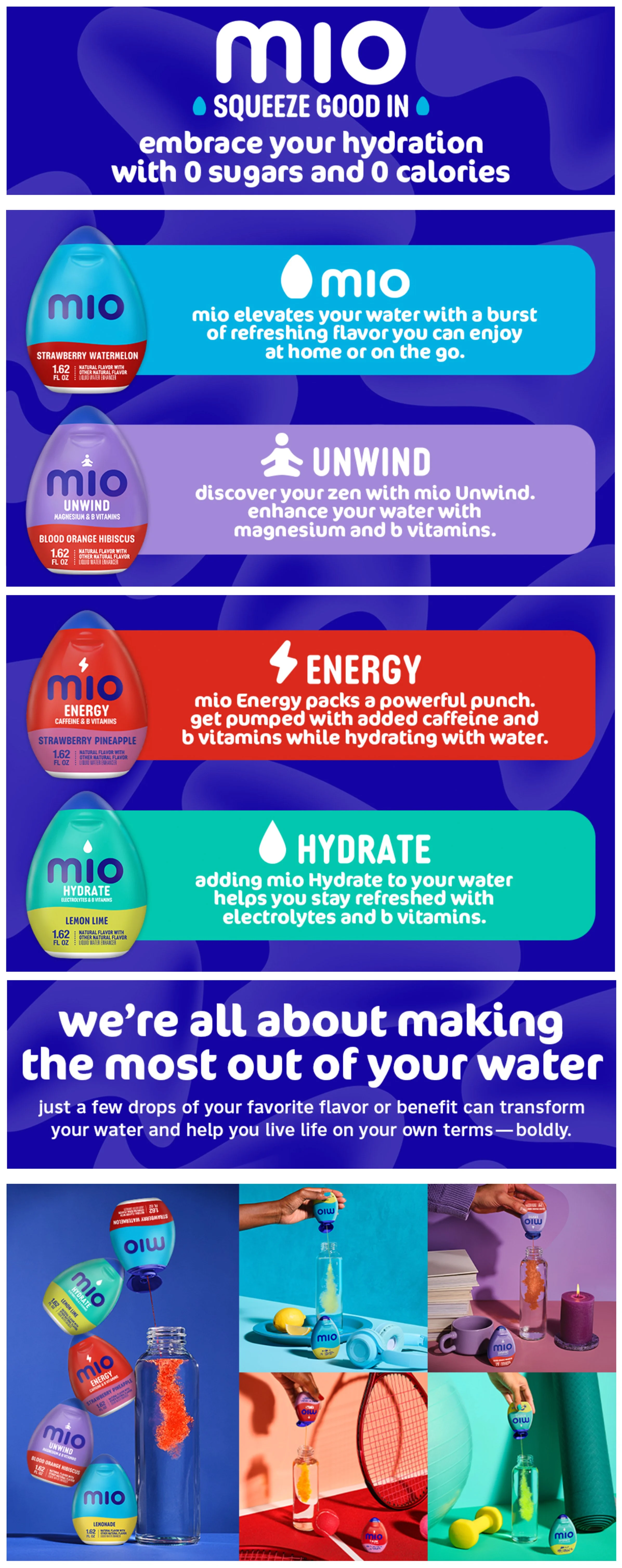 For this set of carousel images we wanted to focus on the convenience and the benefits of using mio. Consumers also have a wide range of options when it comes to flavor. We really wanted to focus on “your h2o, your rules.”